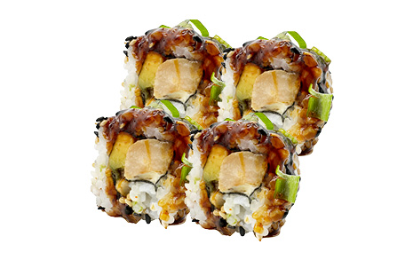Süßes Hähnchen, Avocado, Sesam, Frühlingszwiebeln, Mayo, Teriyaki-Sauce
