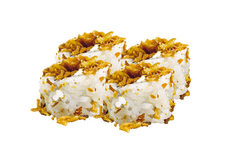 roher Lachs, Avocado, Gurke, Röstzwiebeln, Mayonnaise